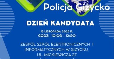 Komenda Powiatowa Policji w Giżycku zaprasza na Dzień Kandydata 15 listopada. To okazja, by porozmawiać z policjantami, poznać zasady rekrutacji i...